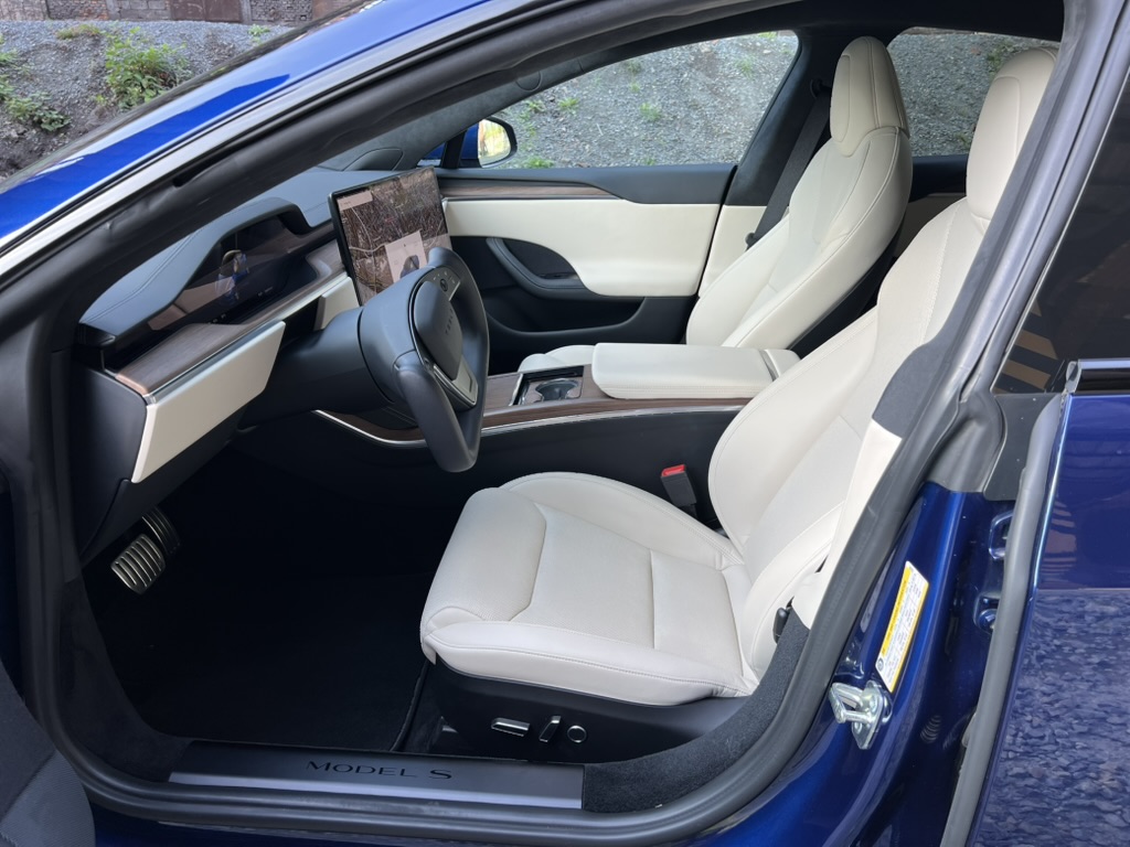 Bez vibrací motoru, bez hluku. Béžová kůže, 22-reproduktorový systém, klimatizace předehřeje auto ještě před tvým odjezdem. Cestování jako v obývacím pokoji.